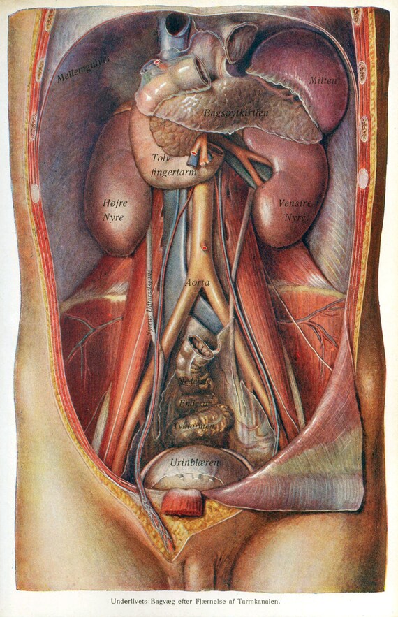 Vintage German Anatomical Dissection Poster Male Abdomen New Fine Art Giclee Print Autopsy Macabre Morbid Grotesque Medical Drawing P197