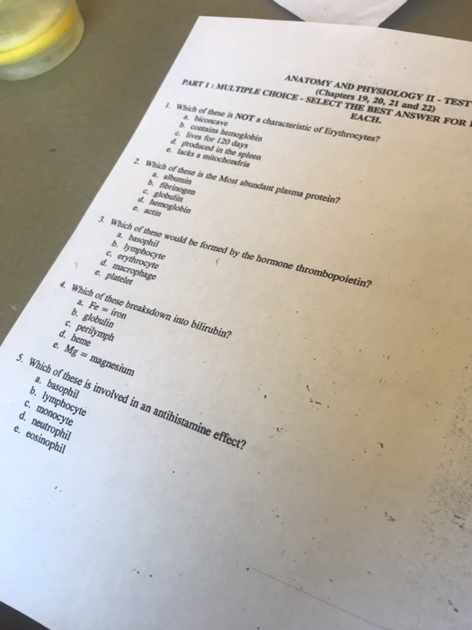 Solved Anatomy And Physiology It Test Chapters 19 20