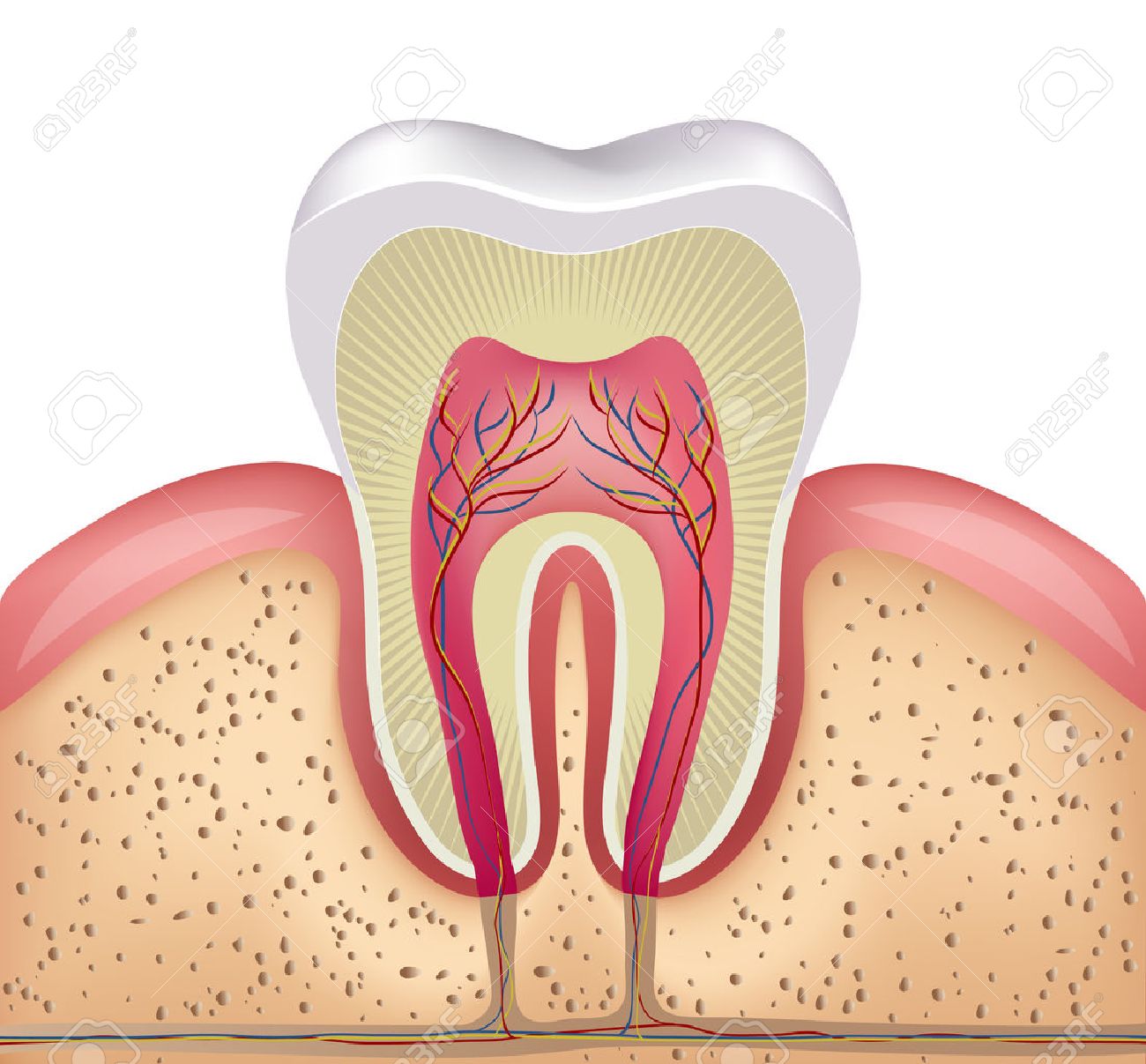 Healthy White Tooth Gums And Bone Illustration Detailed Anatomy