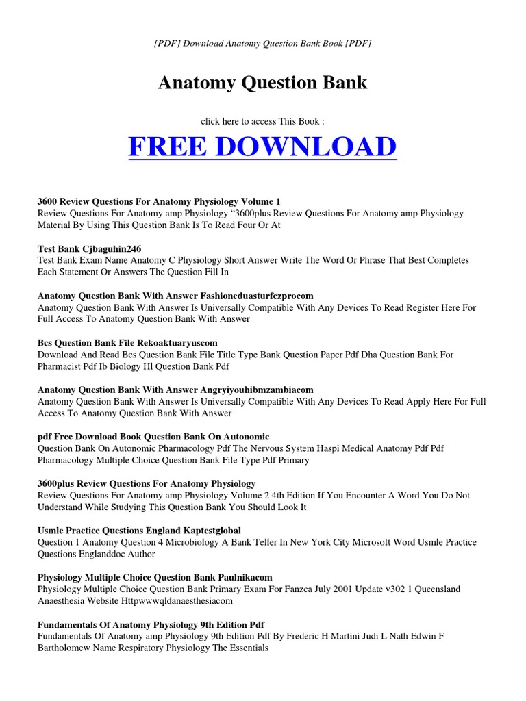 Practice questions for anatomy and physiology here youll find a few questions that will test your knowledge of ap. Anatomy multiple choice questions and answers 1. Anatomy questions and answers.